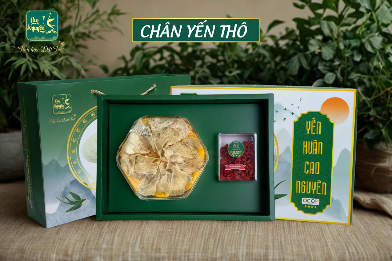 100% tổ yến nguyên chất. Chân yến là phần dày và cứng nhất trong tổ yến. Và là phần có giá trị dinh dưỡng cao nhất vì chúng được tạo ra đầu tiên và đặc nhất. Chân yến chân yến thường nở gấp 1,5 lần so với tổ yến, khi ăn cho ta cảm giác dai-giòn-sực sực.