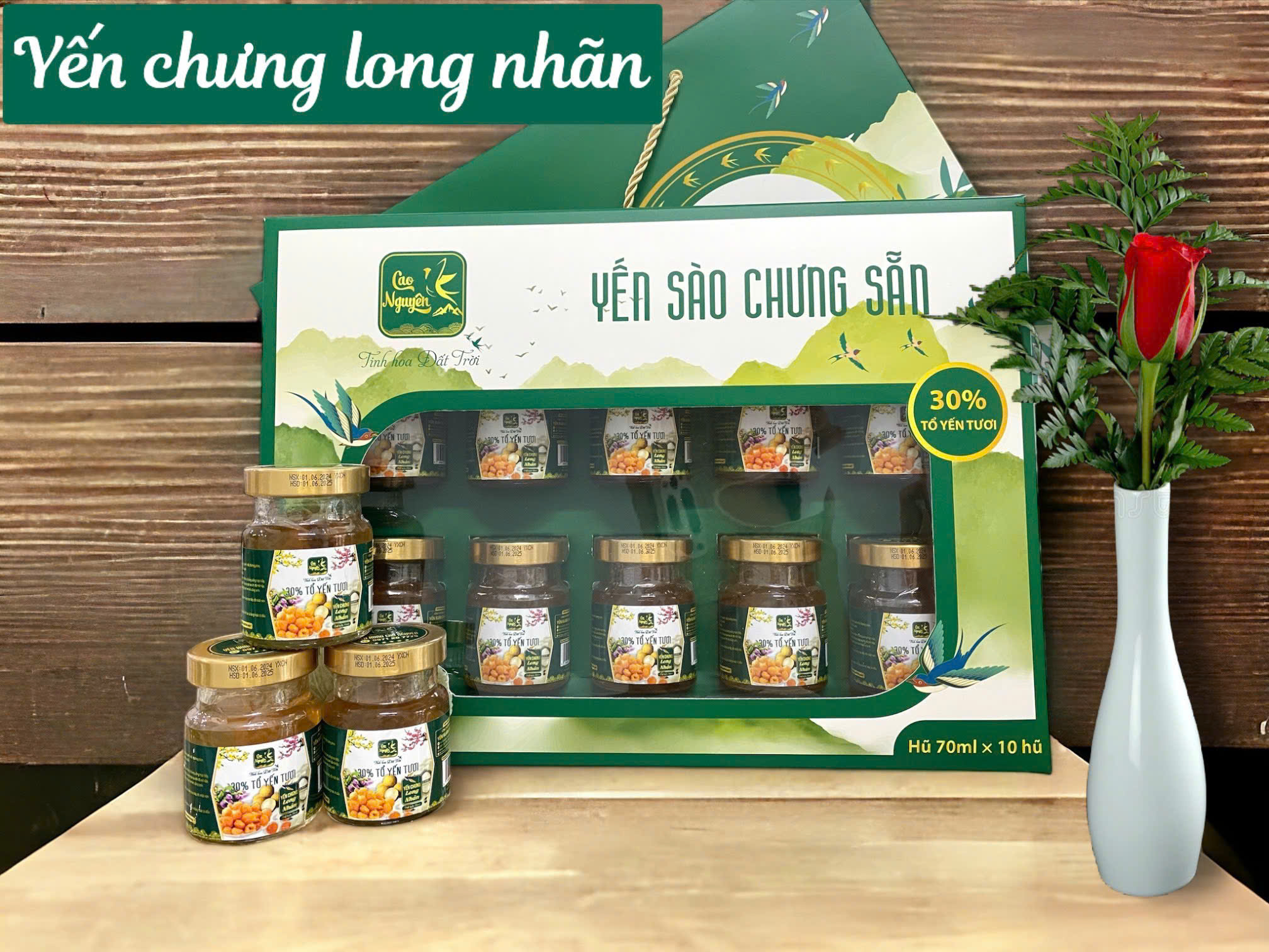 Thành phần: Nước, 30% tổ yến tươi nguyên chất, đường phèn, tinh chất tảo biển, long nhãn.