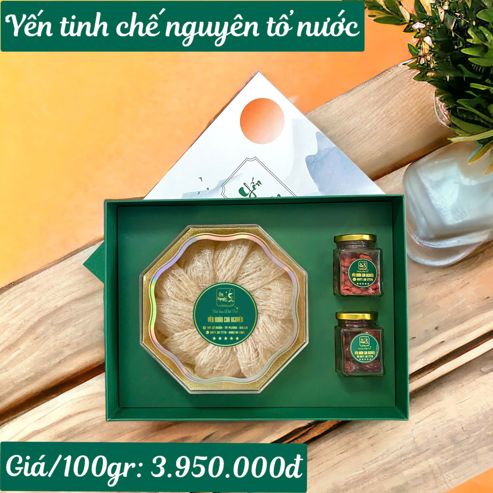 Yến tinh chế nguyên tổ nước có màu sắc sáng vàng tinh khiết, cánh to mỏng đều, nặng và chắc, R Công dụng: