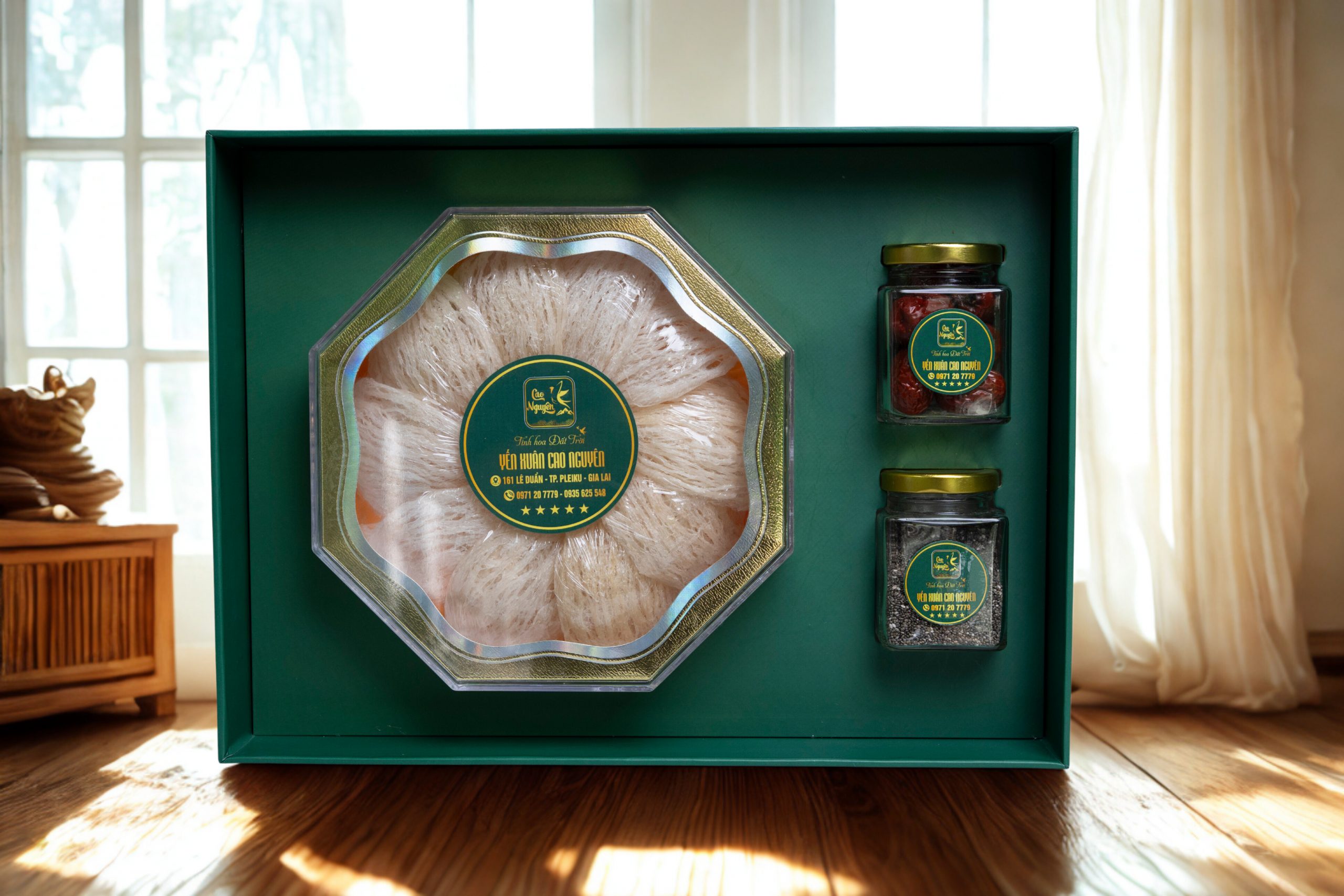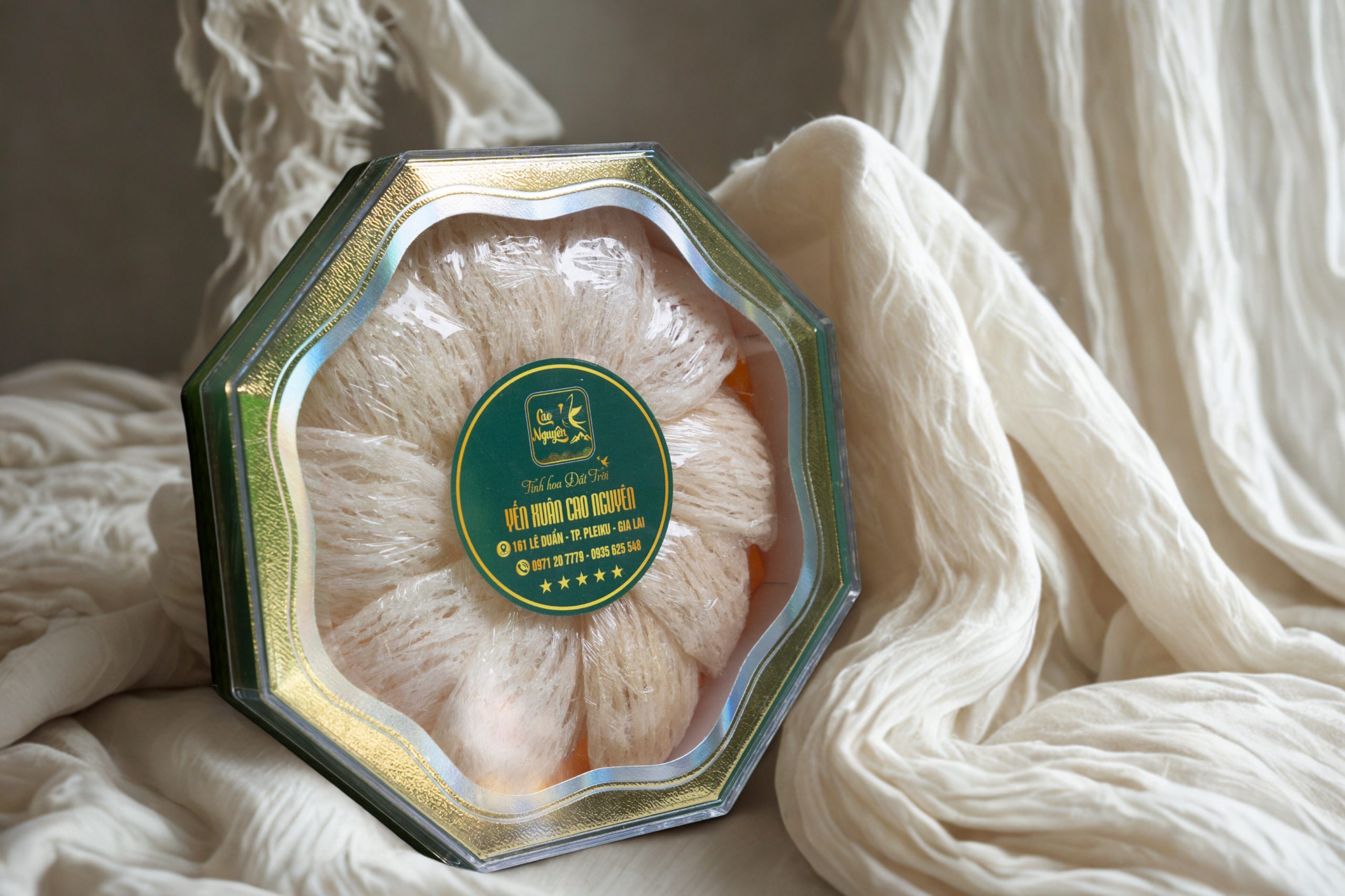 Thành phần: 100% tổ yến nguyên chất. Được làm từ những tổ yến đẹp, cao cấp được chọn lựa và phân loại kĩ càng: tổ ít lông, thân tổ to, hình dáng đẹp và sạch nhất, không có khuyết điểm, sợi yến dài đều. Hàng này đòi hỏi tổ phải giữ được nguyên vẹn 3 phần: chân yến – thân ngoài là phần sợi dài, thân trong là xơ mướp.